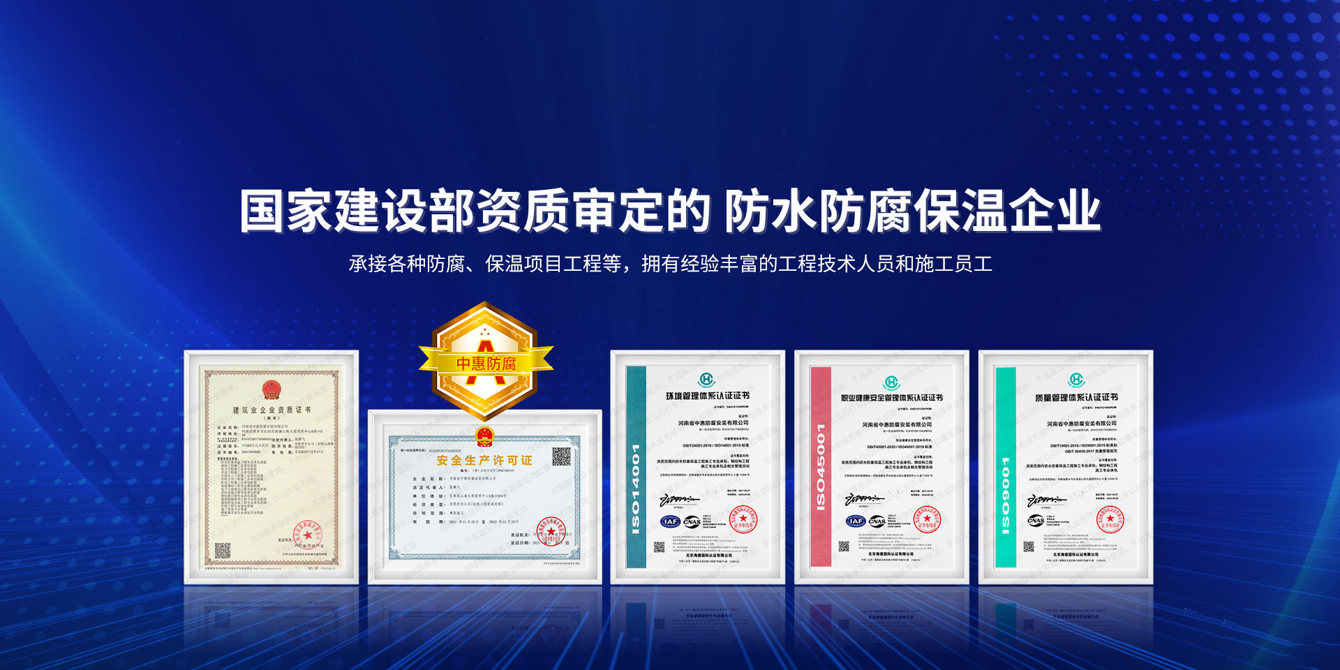 公司經營范圍:防水防腐保溫工程;消防設施工程;建筑裝修裝飾工程;建筑機電安裝工程;電力工程;建筑工程;石油化工工程;工業清洗工程;油罐清洗工程;鋼結構工程;環保工程;模板腳手架工程;電纜防火封堵、防污閃噴涂、外墻外保溫工程;各類施工勞務作業;設備維修、船舶鉚焊、涂裝;電力工程材料、建材、防水材料、防火材料、防腐保溫材料銷售,并相繼通過了GB/T19001-2008idtISO9001:2008GB/T50430-2007質量管理體系認證證書。GB/T24001-2004idtISO14001:2004環境管理體系認證證書。GB/T28001-2011idtOHSAS18001:2007職業健康安全管理體系認證證書。公司是中國防腐蝕于防護協會、中國施工企業管理協會、電力協會和中國鋼結構防水協會會員單位。 公司的經營業務涵蓋了石油、化工、電力、冶金、煤炭、船舶、國防、燃氣、水利、環保、交通運輸、航空及國防軍工和輕紡市政等行業的防腐保溫絕熱設備。鋼結構安裝、防火、防水、金屬噴鍍、聚脲噴繪、陰極保護、防滲透堵漏、玻璃鋼及各種磚版材料襯里、橡膠襯里、煙氣硫和耐酸溶劑腐蝕等工程施工。公司連續十年榮獲“省市先進施工企業”“安全生產先進單位”“重合同,守信用企業”和“AA***資質企業”的稱號。2000年被命名為市級文明單位,2002年被國家工商行政管理局命名為“重合同,守信用的企業”、被中國工業防腐蝕技術協會命名為“防腐蝕企業,能源節約及環境保護領域有豐富的經驗和***的業績。工程一次交驗合格率100%。其中攀枝花鋼鐵公司煉鐵廠四號高爐及熱風爐防腐工程、上海寶鋼公司煤氣柜防腐工程、撫順石油一廠裝置防腐項目、齊魯石化公司稀烴廠高塔防腐工程、吉林化學工業公司煉油廠油罐防腐工程、天津石化熱電廠六號爐頂棚聯絡管保溫工程、大慶油田(太倉)力神泵業工程、中國化學工程第十一建設工程、中原油田勘探局工程、中國石化銷售有限公司華北分部、魯皖輸油管道工程、貴州開磷息烽合成氨工程、陜西黃陵煤化工程、中國石油天然氣西部管道塔里木輸油工程、邯鋼集團邯寶鋼鐵公司煉鐵工程、德州供電工程、吉寶(南通)船廠工程,偃師華潤熱力工程、鄭州熱力總公司。 河南省中惠防腐安裝有限公司愿以豐富的施工經驗,***的技術,***的設備,***的管理,***的服務,竭誠為國內外廣大的用戶提供***滿意、******的工程作品。 我公司愿與國內外同仁一道,團結協作,共同推進防腐蝕行業發展! 公司地址:河南省長垣縣建設路北段360號 固定電話:0373-8866488 郵編:453400 網址:http://www_zhff_com_cn.xuantuojiancai.com